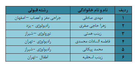 با توجه به اعلام نتایج پنجاهمین دوره آزمون پذیرش دستیاری تخصصی پزشکی (سال تحصیلی 1403-1402)، اسامی دانشجویان پذیرفته شده مشمول سهمیه استعدادهای درخشان دانشگاه جهت استحضار حضرتعالی در جدول ذیل اعلام میگردد.