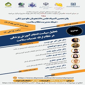 برگزاری وبینار با عنوان تحلیل سیاست ادغام آموزش پزشکی در نظام ارائه خدمات سلامتروابط عمومی مرکز7 تیر 1402وبینار با عنوان تحلیل سیاست ادغام آموزش پزشکی در نظام ارائه خدمات سلامت ... اطلاعات بیشتر