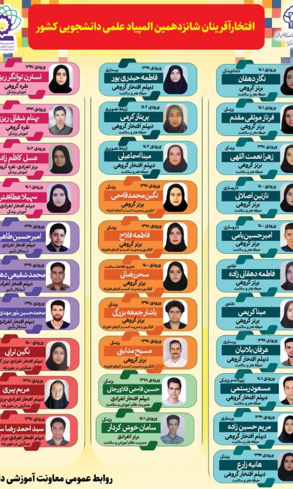 تجلیل از افتخار آفرینان دانشگاه در شانزدهمین المپیاد علمی دانشجویی کشور در سال ۱۴۰۳روابط عمومی مرکز24 مهر 1403مسئول المپیاد و مسئولین حیطه ها و تمامی دانشجویانی که به مرحله نهایی ... اطلاعات بیشتر