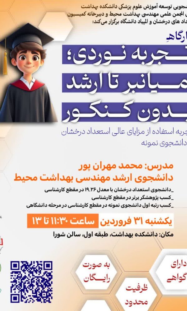 برگزاری کارگاه تجربهنوردی؛ میانبر تا ارشد بدون کنکور روز یکشنبه مورخ 31 فروردین ماهروابط عمومی مرکز26 فروردین 1404کمیته دانشجویی توسعه آموزش علوم پزشکی دانشکده بهداشت با همکاری انجمن علمی مهندسی ... اطلاعات بیشتر