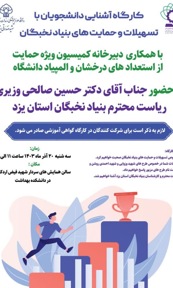 برگزاری کارگاه با عنوان « آشنایی دانشجویان با تسهیلات و حمایت های بنیاد نخبگان»روابط عمومی مرکز4 آذر 1403 به استحضار می رساند دبیرخانه کمیسیون ویژه حمایت از استعداد های درخشان و ... اطلاعات بیشتر
